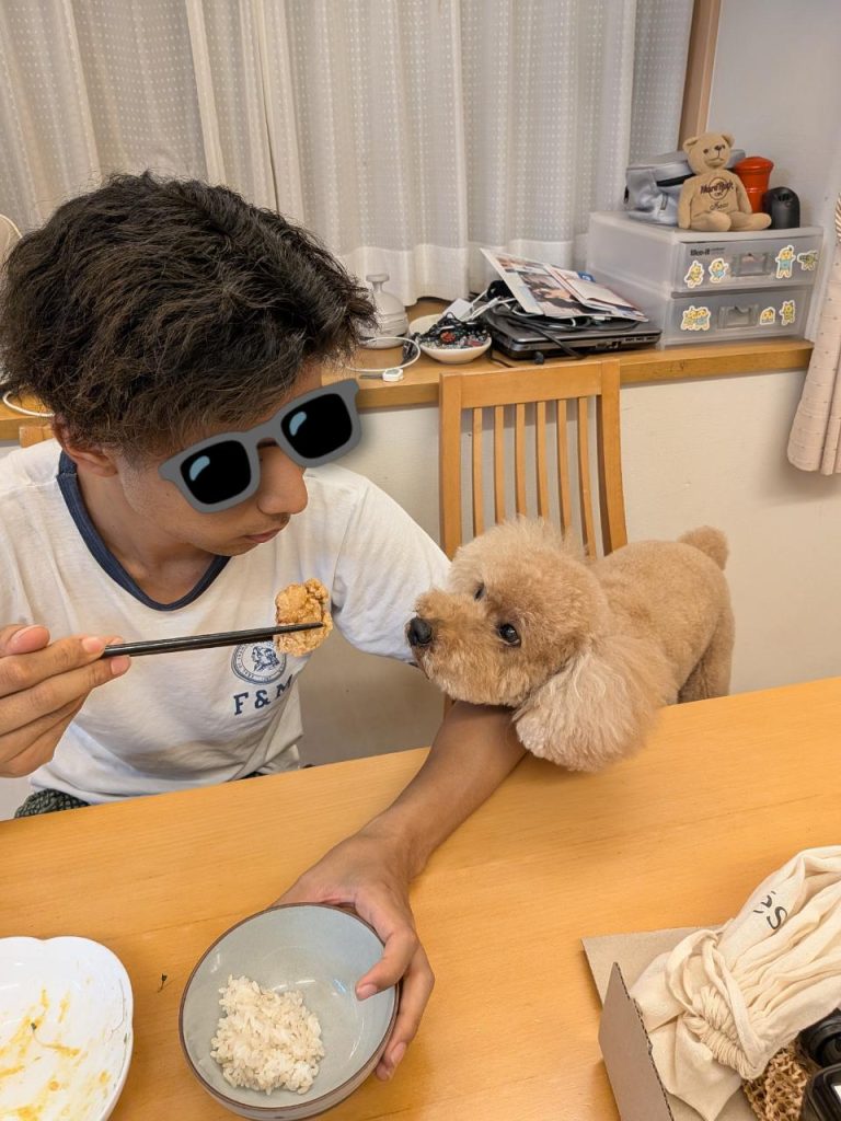 から揚げをもらおうと交渉するチョコタ氏↓↓