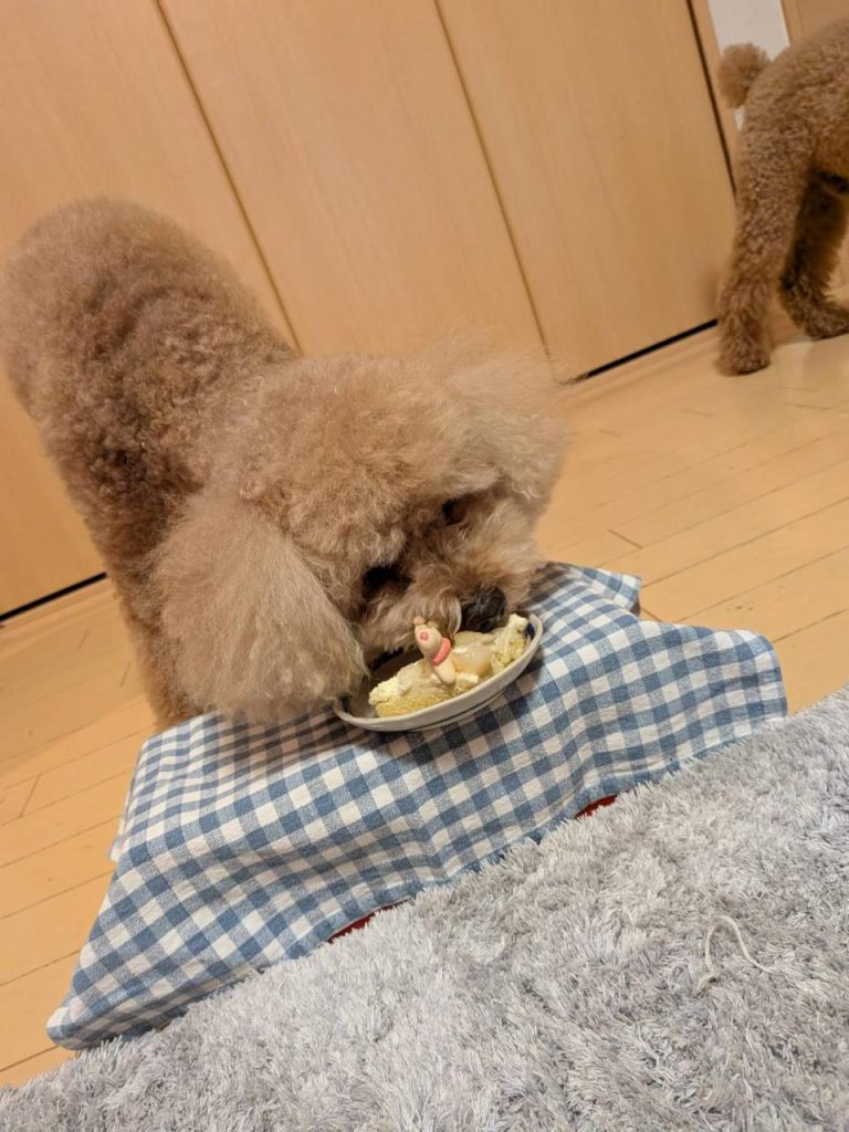 今年も高価な犬用ケーキを無呼吸で飲み込むライス↓↓↓