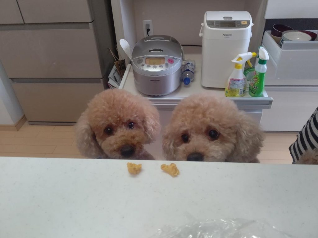 食欲の秋ということで、大好きな焼き芋🍠🍠にロックオンする犬っ子たち↓↓